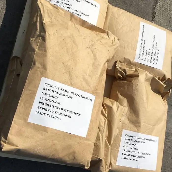 Benzotriazole is mainly used as a water treatment agent, metal rust inhibitor, and corrosion inhibitor. Benzotriazole is one of the most effective corrosion inhibitors for copper and copper alloys in cooling water systems. Widely used as a circulating water treatment agent, rust preventive oil, and lipid product, as well as a vapor phase corrosion inhibitor and lubricant additive for copper and copper alloys. Used for surface purification of silver, copper, and zinc in electroplating, it has an anti discoloration effect.