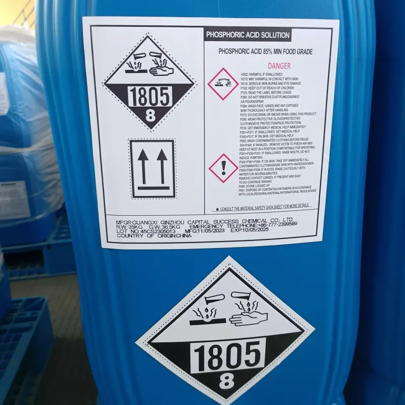 Phosphoric acid can be used as a clarifier to complete with heavy metal ions that may exist in beverages to prevent oxidative browning ("rust"). Stabilize the color and reduce the turbidity of the drink.