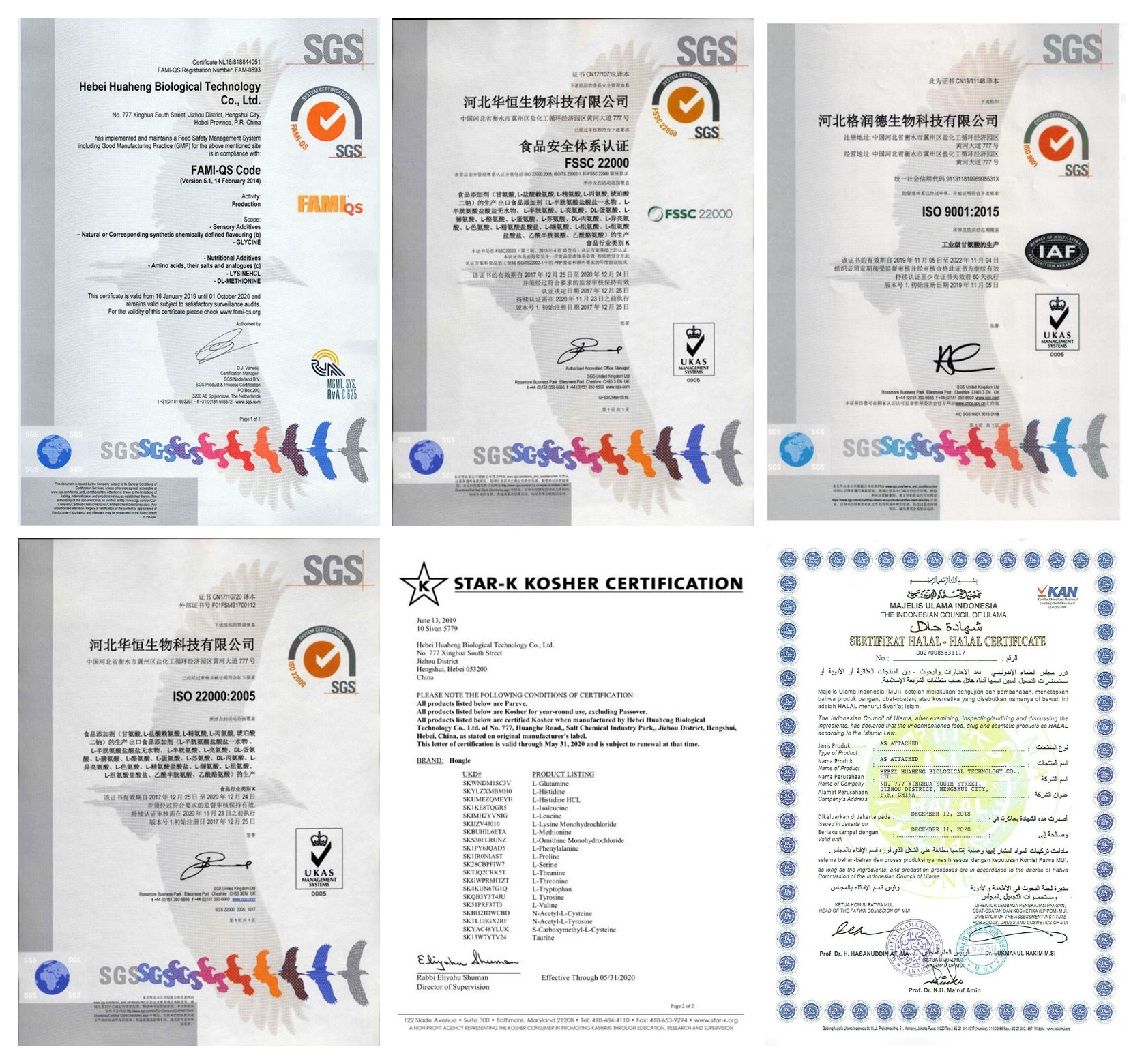 L-Lysine Hydrochloride / L-Alanine / DL-Alanine / L-Cystine / Glycine / DL-Methionine / L-Cysteine Hydrochloride Monohydrate / L-Threonine / L-Methionine / L-Cysteine Hydrochloride / L-Arginine / L-Aspartic Acid / L-Cysteine / L-Arginine Hydrochloride / S-Carboxymethyl-L-Cysteine / L-Histidine / L-Glutamic Acid / L-Tyrosine / L-Leucine / N-Acetyl-L-Cysteine / L-Valine / N-Acetyl-L-Tyrosine / L-Tryptophan / N-Acetyl-L-Leucine / L-Isoleucine / L-Ornithine Hydrochloride