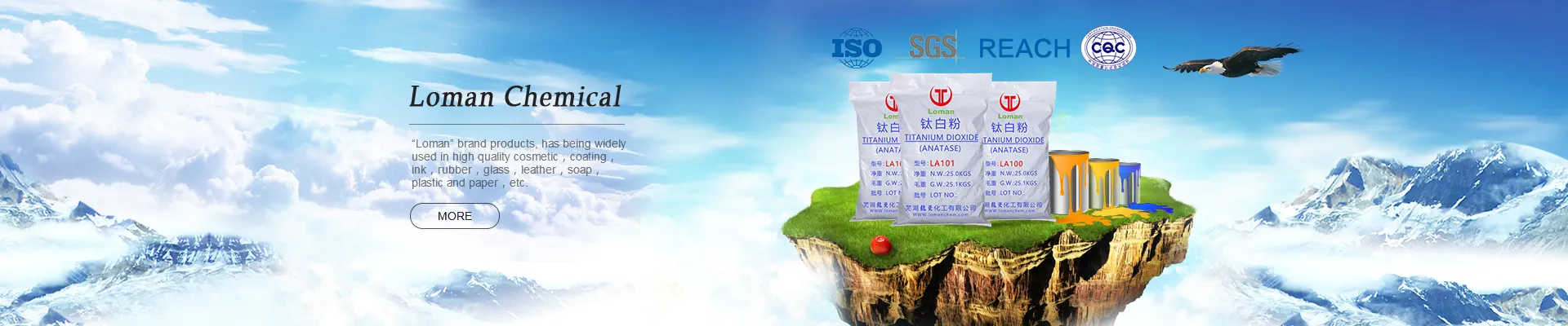 Loman Chemical Group (include Shanghai Loman Chemical Co., Ltd.; Wuhu Loman Chemical Co., Ltd. and Wuhu Loman Titanium Industrial Co., Ltd.) is one of the main titanium dioxide manufacturers in china, producing various high quality Anatase and Rutile titanium dioxide. “Loman” brand products, has being widely used in paper, paint, plastic, ink, coating, rubber, cosmetic, food, fiber, etc.