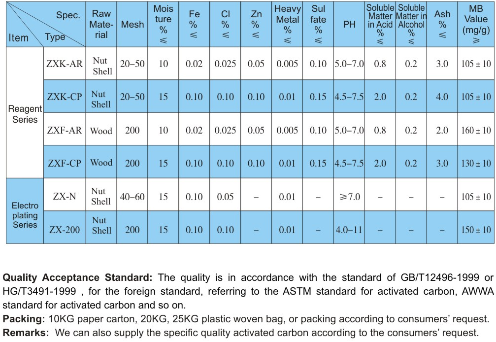 Activated Carbon for Noble-metal Carrier, Accelerant Carrier and Gold Purification