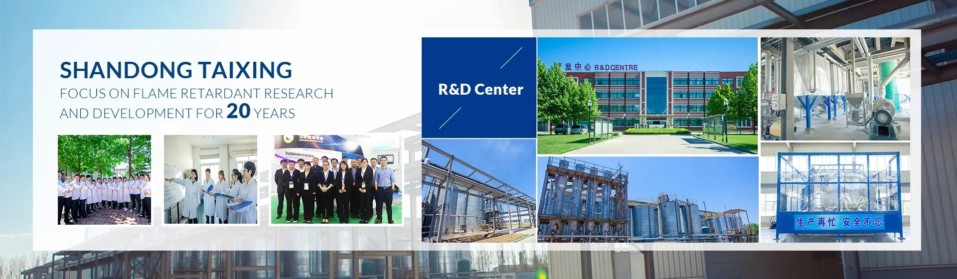 Shandong Taixing new materials Co., Ltd.(Shandong Taixing Flame Retardant), established in 1998, is a national high-tech enterprise controlled by Shandong energy group, specializing in the R & D, production and sales of flame retardant, flame retardant masterbatch and flame retardant special materials. The company has a registered capital of RMB 100 million, covers an area of 120000 m2, and has more than 260 employees, of which more than 30% have bachelor's, graduate and doctoral degrees, and more than 42% have professional technicians.