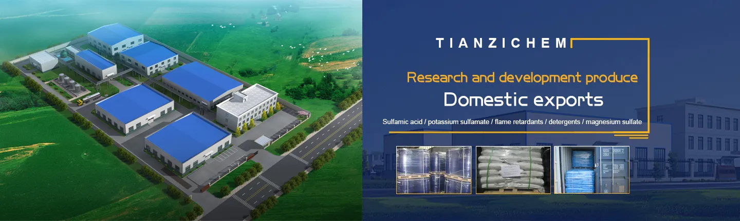 Qinhuangdao Tianzi Chemical Industry Co., Ltd.our company mainly produces industrial grade guanidine hydrochloride, pharmaceutical grade guanidine hydrochloride, ammonium sulfamate, guanidine sulfamate, sodium sulfamate, sulfamic acid, potassium sulfamate, flame retardant, etc.