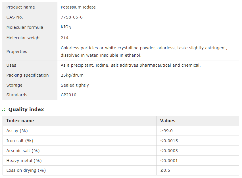 Potassium Iodide / Iodine / Sodium Iodide / Sodium Periodate / Hydriodic Acid / Orthoperiodic Acid / Potassium Iodate / Calcium Iodate / Ammonium Iodide
