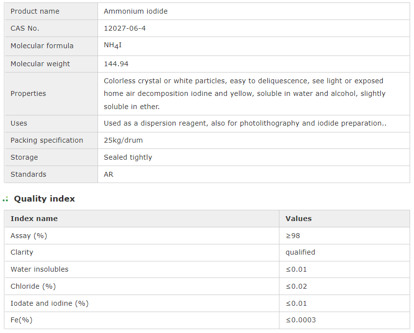 Potassium Iodide / Iodine / Sodium Iodide / Sodium Periodate / Hydriodic Acid / Orthoperiodic Acid / Potassium Iodate / Calcium Iodate / Ammonium Iodide