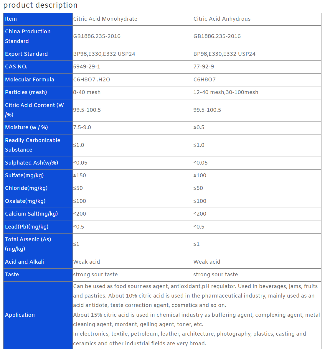 2. About 10% citric acid is used in the pharmaceutical industry, mainly as an anti acid antidote, flavoring agent, cosmetics, etc.