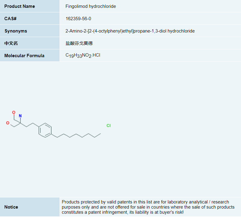 Fingolimod Hydrochloride / CAS 162359-56-0