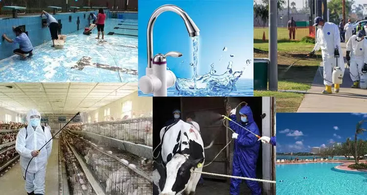 It is also used for sterilization and disinfection of urban and rural drinking water and swimming pool water. The chemical industry is used for the purification of acetylene and the manufacture of chloroform and other organic chemical raw materials. It can be used as wool shrinkage inhibitor, deodorizer, etc.