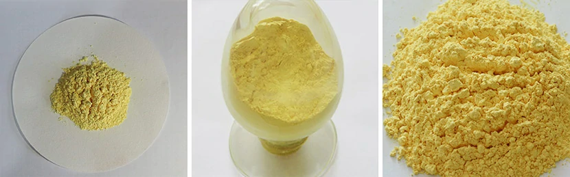 Traits: yellow powder, specific gravity 9.53, MP 880 ° C, BP 1470 ° C, freely soluble in acids and hot bases, insoluble in water.