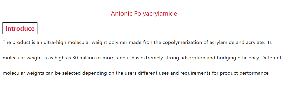 Acrylic Acid / Cationic Polyacrylamide / Anionic Polyacrylamide / Nonionic Polyacrylamide / Zwitterionic Polyacrylamide / Polyacrylamide
