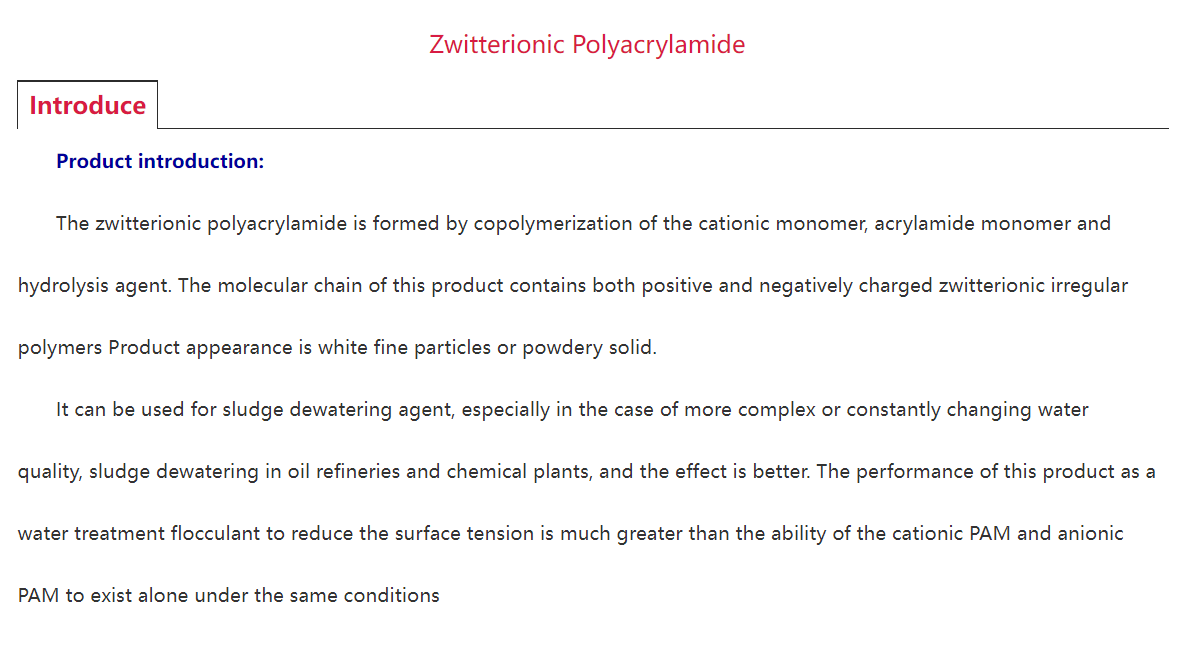 Acrylic Acid / Cationic Polyacrylamide / Anionic Polyacrylamide / Nonionic Polyacrylamide / Zwitterionic Polyacrylamide / Polyacrylamide