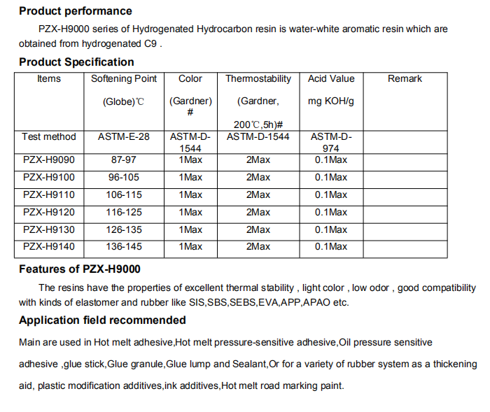 Hydrogenated Petroleum Resin PZX-H9000 / CAS 64742-16-1