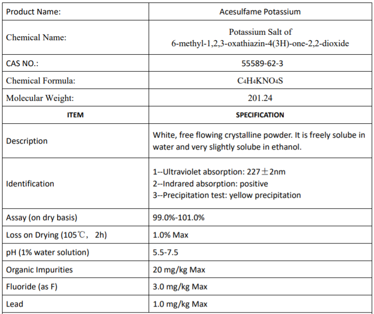 Specification of Acesulfame-k(CAS NO 55589-62-3)