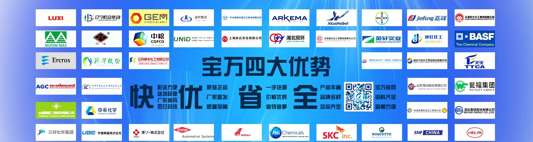 Guangzhou Baowan Chemical Co., Ltd. is located in Guangzhou Chemical City, a large chemical wholesale mall in South China. The company has fully electronic business personnel to manage the distribution and of commodities, and has an independent professional warehouse. It has a variety of raw materials and commodities for a long time, which can be directly selected by customers at any time. It can deliver goods to the door or handle logistics consignment. The customer groups cover Guangdong Province, Guangxi Province, Hainan Province, Jiangxi Province, Fujian Province and Zhejiang Province. Since its establishment, based on the principle of "equality, mutual benefit and mutually beneficial development", the company has operated in good faith, won the favor and love of customers, followed up service in after-sales service, strictly controlled the quality of products, and created a good reputation. In a short time, it has established a good reputation cooperation relationship with many customers. On the basis of good faith and mutual benefit, the company acts as an agent to distribute the products of many large manufacturers at home and abroad, such as American Dow, German ham, Taiwan Panya, Korean SKC, Sinopec, Singapore lion head, BASF, Dow and other products of various origin.