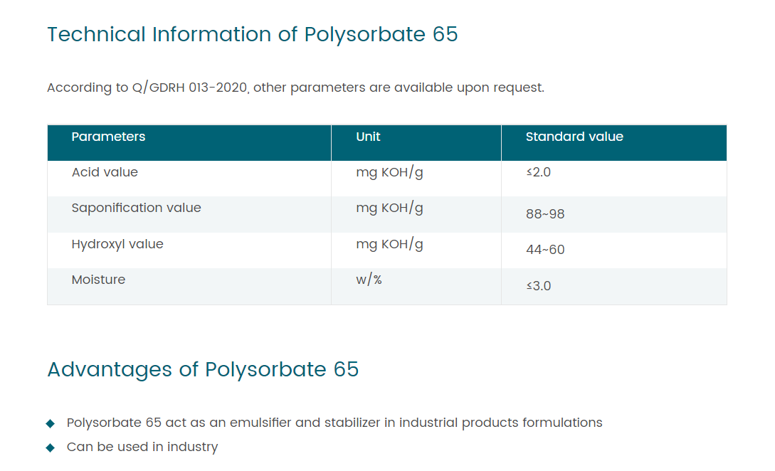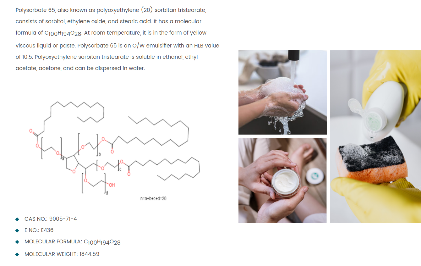 Sorbitan Trioleate / Polysorbate 20 / Polysorbate 40 / Polysorbate 60 / Polysorbate 65 / Polysorbate 80 / Polysorbate 85 / Sorbitan Monolaurate / Sorbitan Monopalmitate / Sorbitan Stearate / Sorbitan Tristearate / Sorbitan Monooleate / Sorbitan Sesquioleate