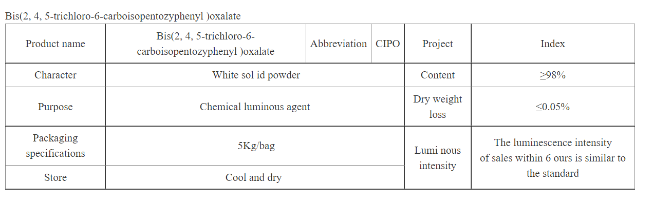 Bis(3,5,6-Trichloro-2-N-Pentyloxycarbonylphenyl) Oxalate###Bis(2-Carbopentyloxy-3,5,6-Trichlorophenyl) Oxalate