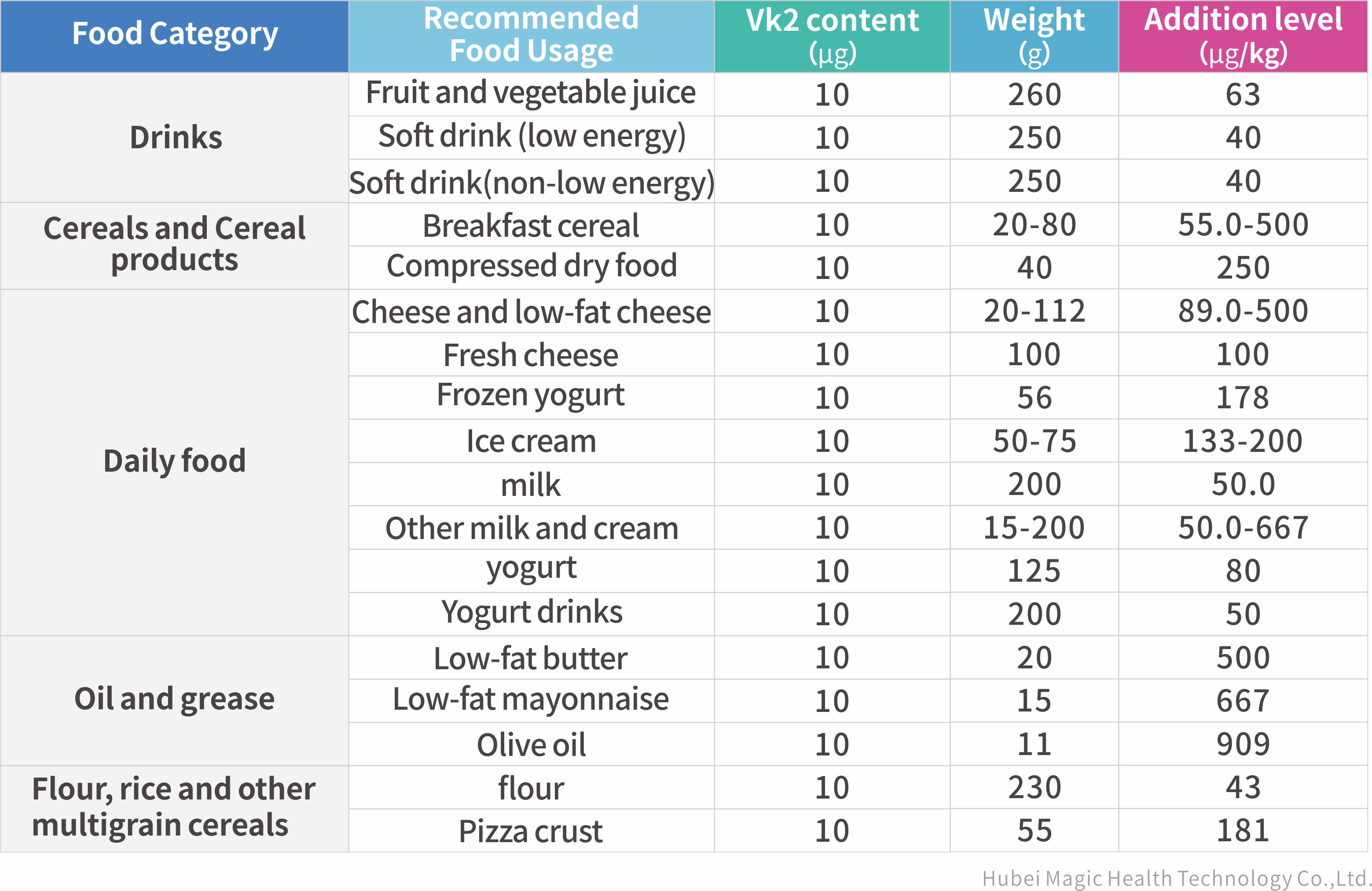 The National Health and Family Planning Commission of China has approved the fortification of vitamin K2 in milk powder prepared for children and pregnant women, which can avoid bleeding symptoms caused by incomplete development of the coagulation system or vitamin K deficiency caused by a dietary deficiency in children and newborns.
