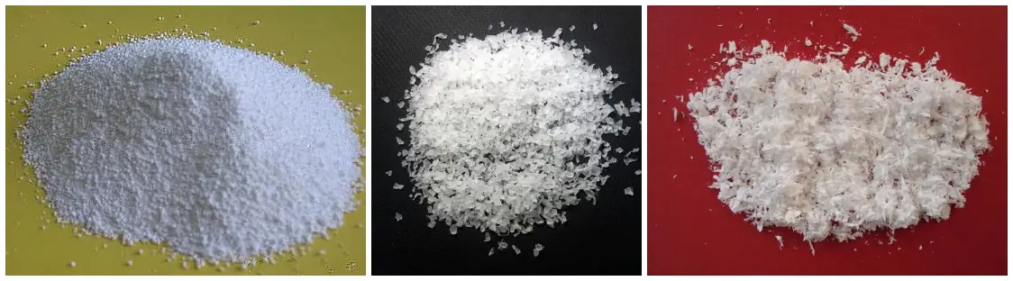 The appearance is white flake, granular, or powdery solid (low alkali alcoholysis process) or white flocculent solid (high alkali alcoholysis process). Specific gravity: 1.23-1.31g/cm3, filling specific gravity of sheet PVA: 0.42-0.52g/cm3, filling specific gravity of flocculent PVA: 0.20-0.27g/cm3.