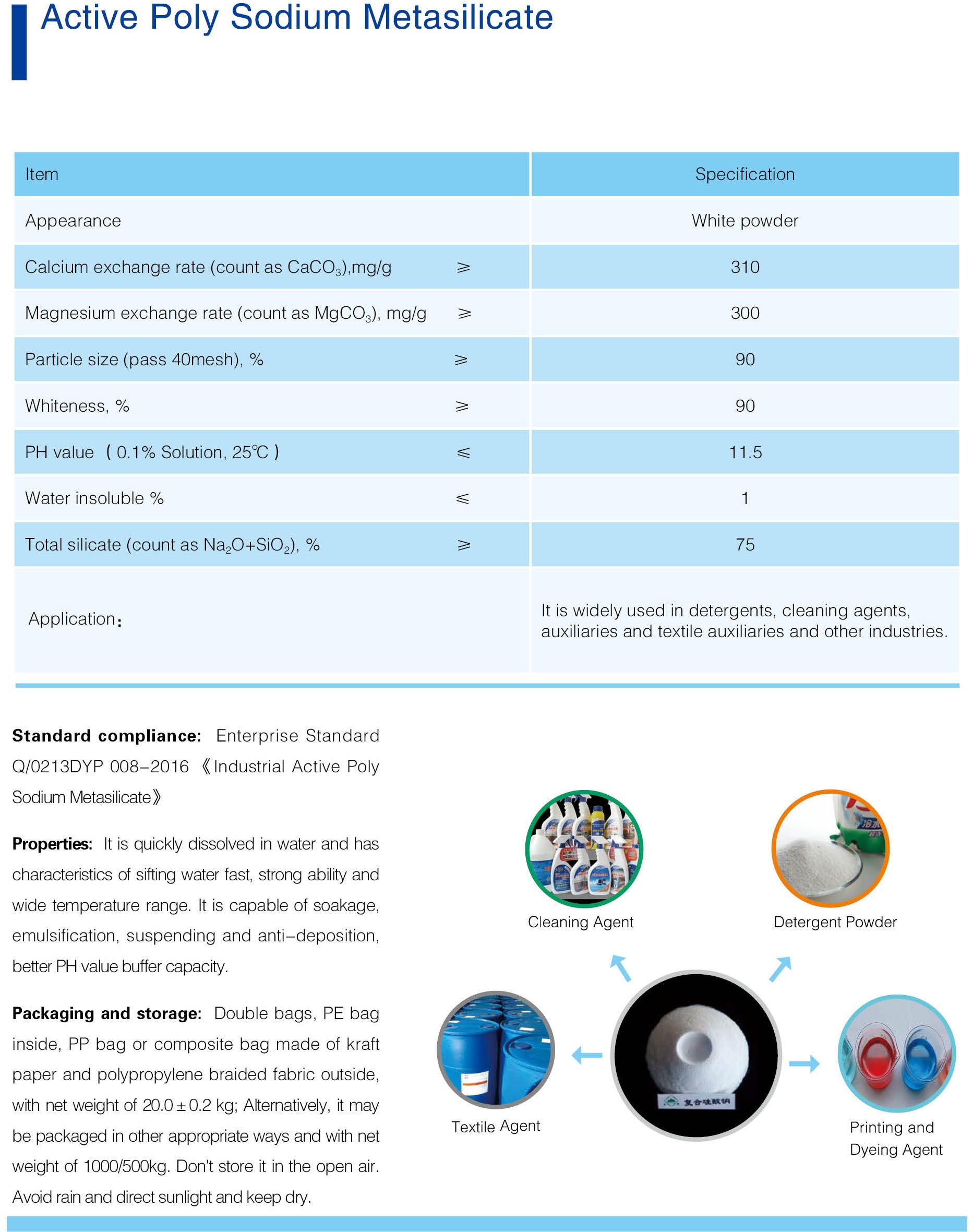 Active Poly Sodium Metasilicate / CAS 1344-09-8