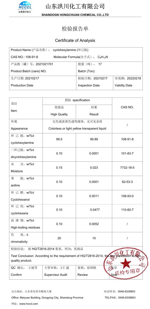 Cyclohexylamine(CHA) / CAS 108-91-8