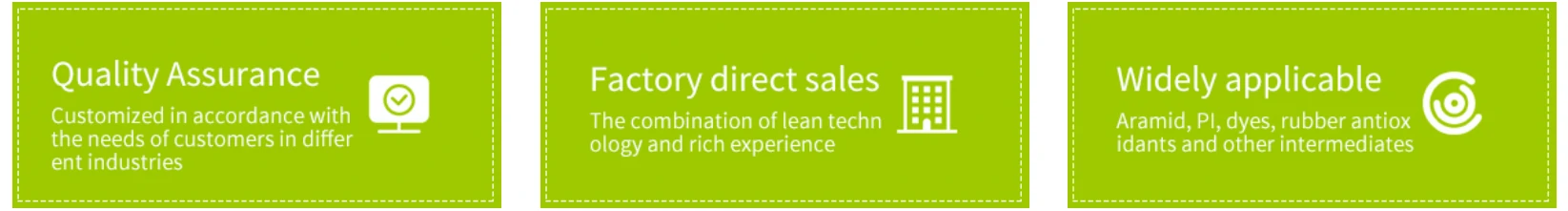 With strong technical force, advanced processing equipment and perfect testing methods, the company has developed high-purity p-phenylenediamine, o-phenylenediamine, m-phenylenediamine and other products according to the needs of customers.