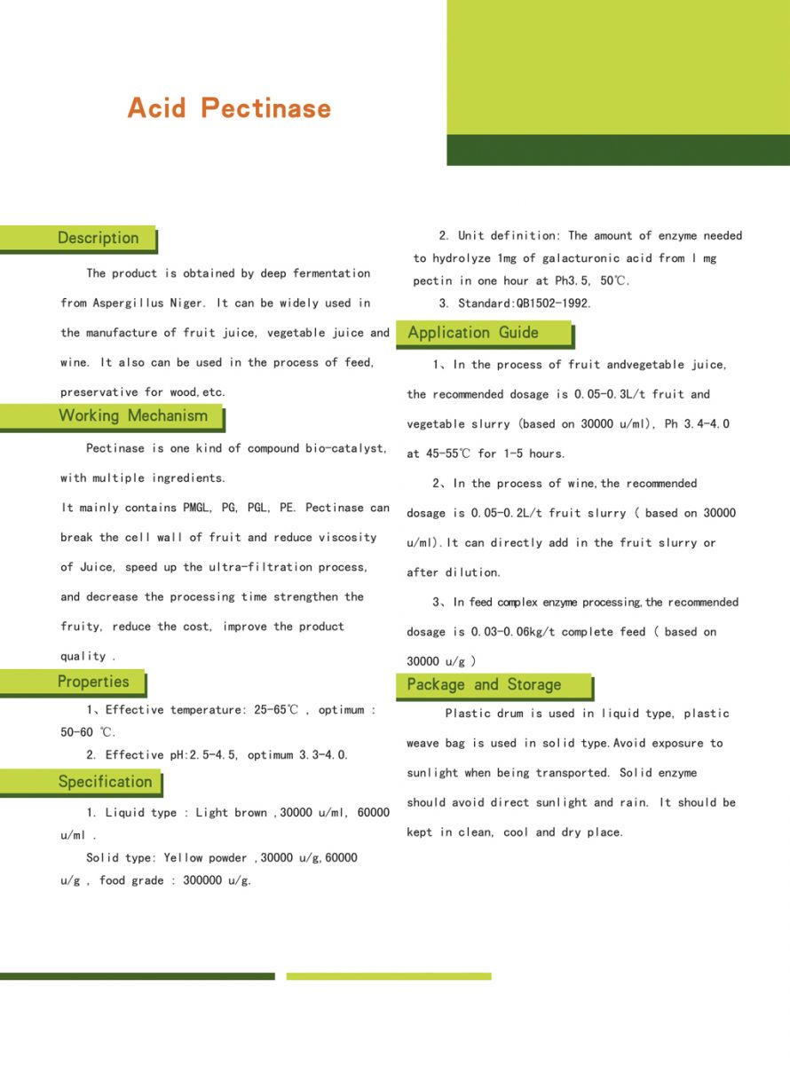 Cellulase / β-Glucanase / Alpha-Amylase / Protease / Endo-1,4-Beta Xylanases / Pectinase / α-Amylase / Wide Temperature Desizing Enzyme / Catalase / β-Amylase / Pullulanase