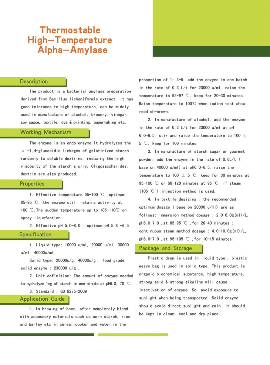 Thermostable High-Temperature Alpha-Amylase / CAS 9000-90-2