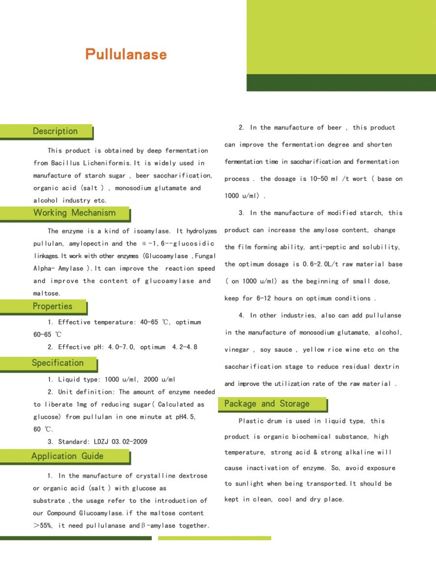 Cellulase / β-Glucanase / Alpha-Amylase / Protease / Endo-1,4-Beta Xylanases / Pectinase / α-Amylase / Wide Temperature Desizing Enzyme / Catalase / β-Amylase / Pullulanase
