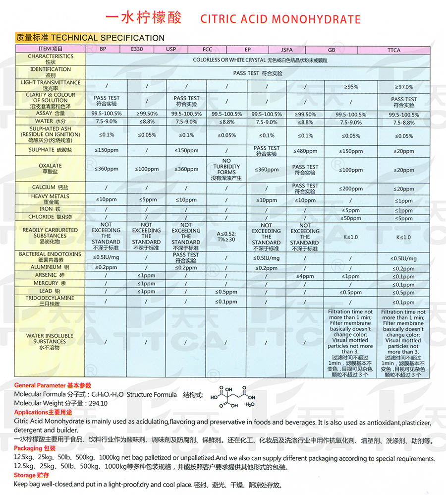 Citric Acid / Citric Acid Monohydrate / Sodium Citrate
