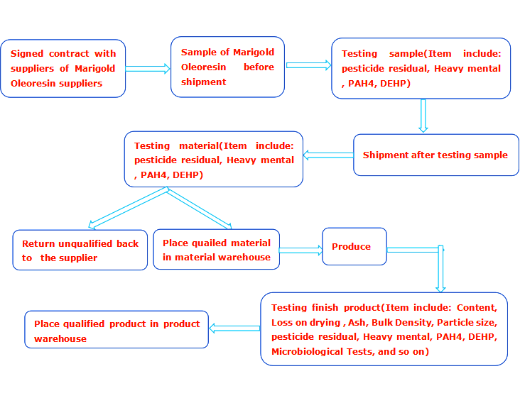 6.Comply with Non-solvent residual because we use Marigold oleoresin which extracted by CO2.