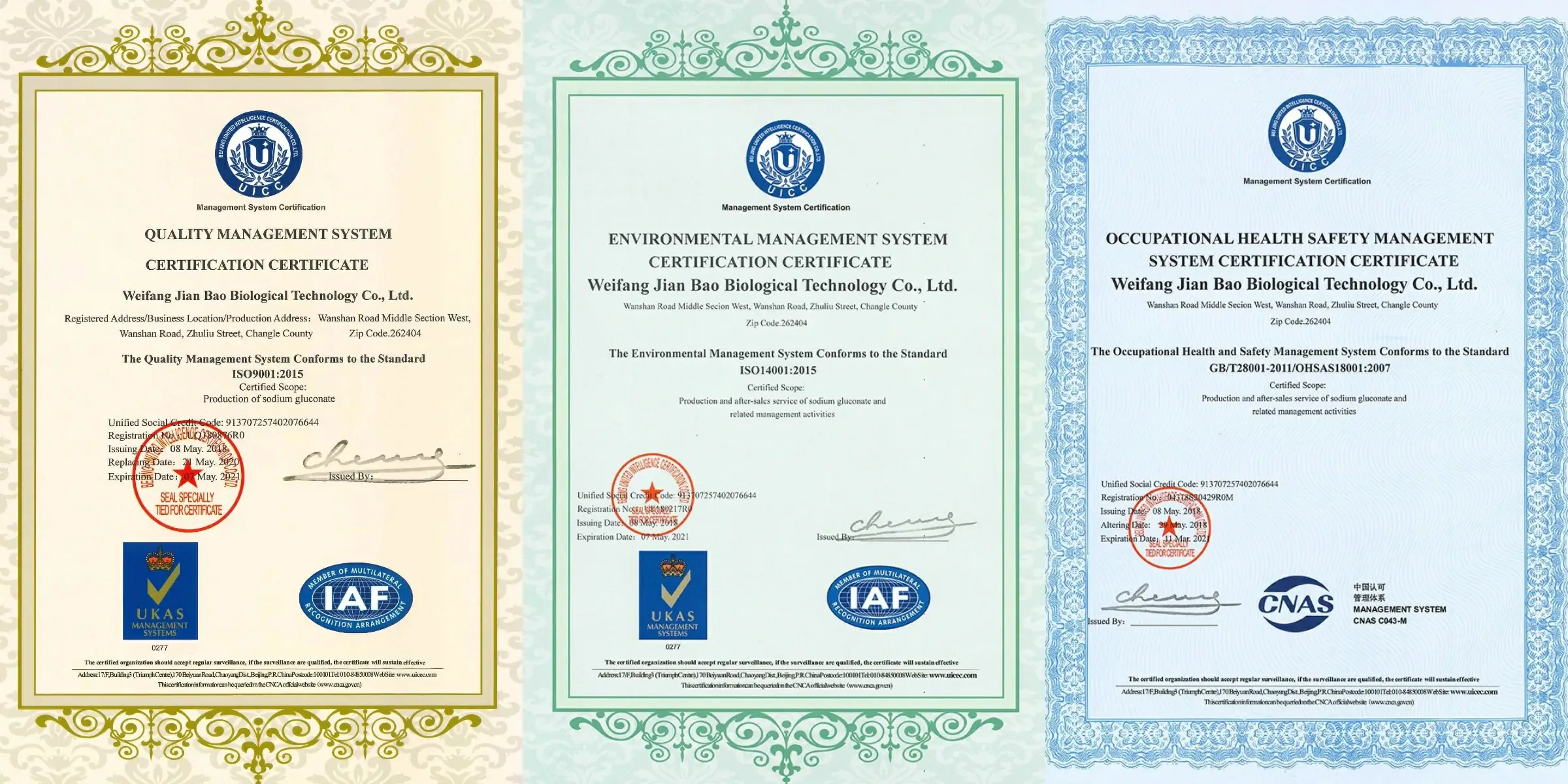 Weifang Jianbao Biotechnology Co., Ltd. is the largest sodium gluconate production base in China with capacity 105000mt annually. It is widely used as a superplasticizer and retarder in concrete.
