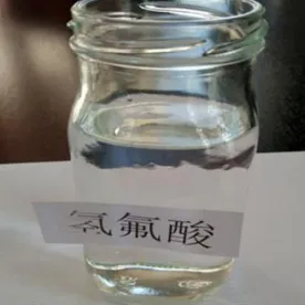 Physical and chemical properties: The formula is HF, and the molecular weight is 20.01, it is a kind of colorless and transparent liquid, and the relative density is around 1.15-1.18. It can have a reaction with the normal metal, metallic oxide and hydroxide, generating all kinds of salts. With high corrosivity, it can erode glass and silicate, generating gaseous silicon tetrafluoride. High purity hydrofluoric acid can be used as a highly acid detergent and corrodent, which can also be used with nitric acid, glacial acetic acid, hydrogen peroxide and ammonium hydroxide and etc, with a certain proportion.