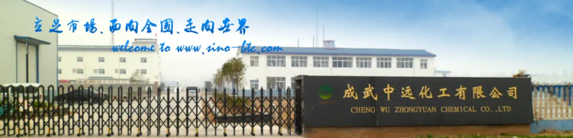 Shandong Chengwu Zhongyuan Chemical Co., Ltd. is situated in Heze, Shandong, and it covers 40000㎡. The company owns more than 60 employees, over 10 of which are engineering and technical personnel and senior research personnel. The company has been manufacturing environmental products with high technical content and low energy consumption. Based on strong technical force, the company occupies a leading position in the industry in China. Main products include bis(trichloromethyl)carbonate. The annual output of bis(trichloromethyl)carbonate is more than 10000 tons.