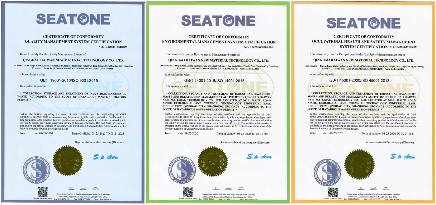 To ensure sustainable development, we are paying great attention to environmental protection. With daily treatment of 2500MT effluent, we are among the first factories that got the pollutant emission certificate in Qingdao.