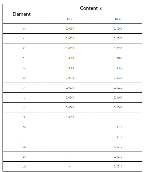 3 chemical composition the chemical composition of the product shall comply with the provisions of Table 2. Molybdenum content is determined by impurity reduction method.