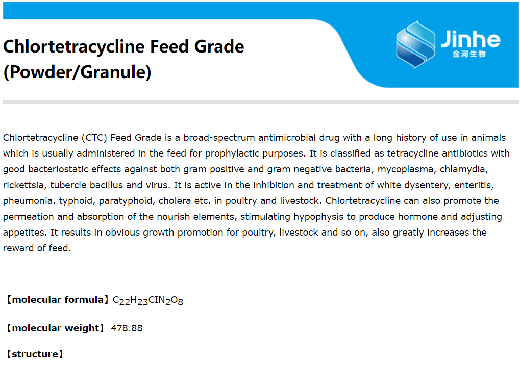 Chlortetracycline Feed Grade (10%, in powder or granule form) / CAS 57-62-5