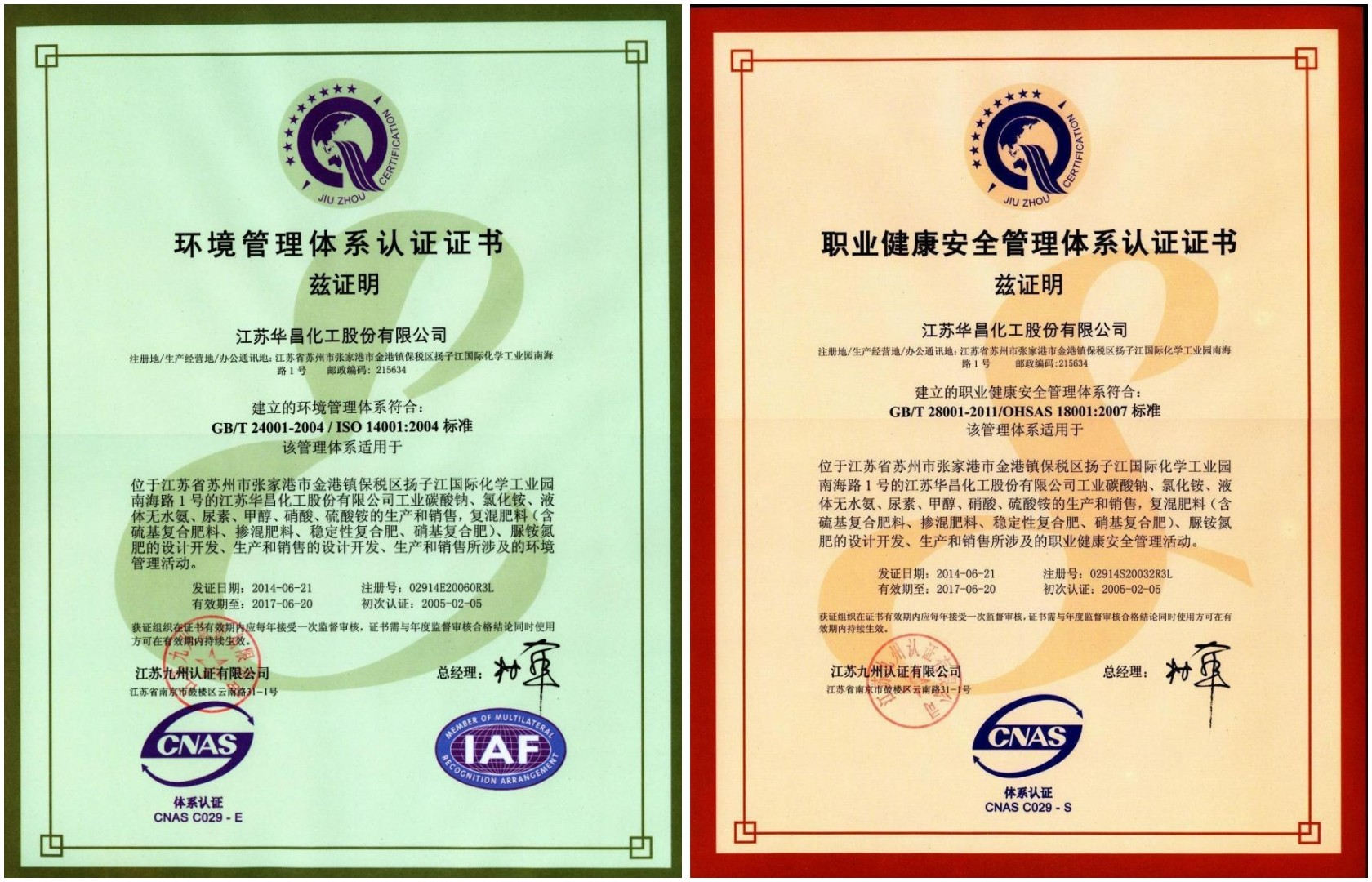 Certificates of Jiangsu Huachang Chemical Co.,Ltd.