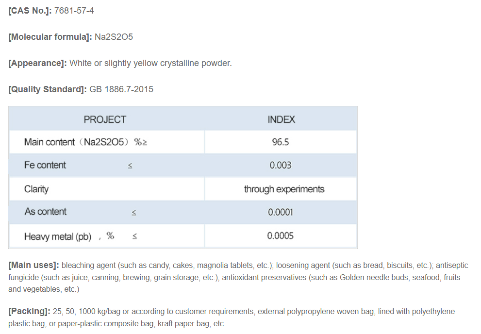 Sodium Metabisulfite(Food Grade) / CAS 7681-57-4