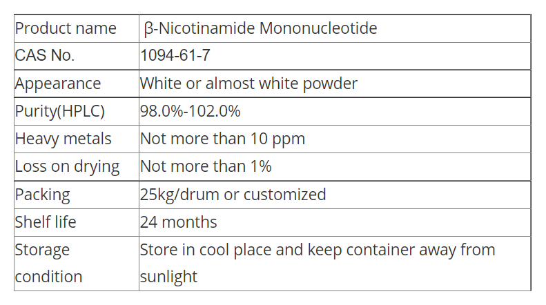 Nicotinamide mononucleotide plays an important role in human cell energy production. It participates in the synthesis of intracellular NAC (nicotinamide adenine dinucleotide, an important coenzyme of cell energy conversion). Nicotinamide is a derivative of vitamin B3. NAD + is a molecule with multiple functions in vivo, which is mainly realized by promoting cell signal transduction enzymes called sirtuins. These enzymes are essential for normal function, among which s1rt1 (with seven silent regulatory proteins) is particularly unique. Studies have shown that it has high activity after caloric restriction, and caloric restriction itself brings many benefits, including signs of life extension. There is no doubt that further tests show that the increase of s1rt1 level can prevent metabolic decline and disease.