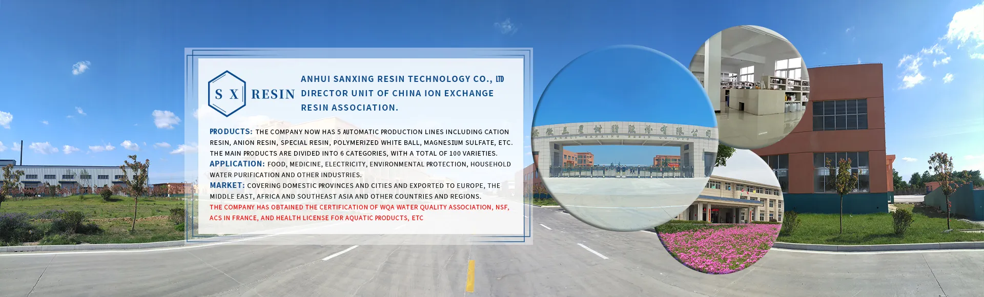 Anhui Sanxing Resin Technology Co., Ltd., the director unit of China ion exchange resin Association, is a recognized national high-tech enterprise, located in the economic development zone of Guzhen county. It is a scientific and technological private enterprise. The company was established in May 2004, covering an area of 230 mu, with total assets of 800 million yuan and 180 employees. The company is the main scientific research and production base of ion exchange resin and macroporous resin in China, with an annual production capacity of 50000 tons. Samsung resin company has many years of experience in resin research, development and manufacturing. It is a key backbone enterprise in domestic resin production. It has an independent technology R & D center and 20 people with intermediate titles or above. There are biological separation laboratories jointly established with several major universities in China, with strong technical force. Samsung resin company has advanced production technology, management level and high automation level, and has a sound quality system. The quality fully meets the requirements of ISO9001 (CQC) quality system and meets the domestic and international test standards. The company now has 5 automatic production lines of cation resin, anion resin, special resin, polymerized white ball and magnesium sulfate. The main products are divided into 6 categories, with a total of 100 varieties. The products are widely used in food, medicine, electric power, environmental protection, household water purification and other industries. The market covers all provinces and cities in China and is exported to Europe, America, the Middle East, Africa, Southeast Asia and other countries and regions. The company has obtained American WQA Water Quality Association certification, NSF certification, French ACS certification and aquatic product hygiene license. The company has a clean working environment, which meets the requirements of ISO14001 international standard. The service is considerate, can timely and effectively provide customers with satisfactory service, and realize the commitment to each user in terms of product quality, variety, delivery date and after-sales service.