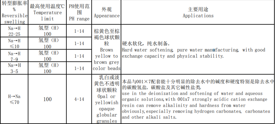Styrene Series Gel Strong Acid Cation Exchange Resin