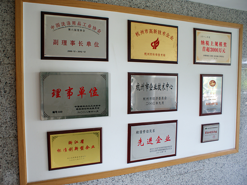 The company is one of the top 100 enterprises in China's food additive industry, the chairman unit of oil chemical branch of the China washing products industry association, the first batch of standard innovative enterprises in Zhejiang Province and high-tech enterprises in Hangzhou. It has passed ISO9001:2008 quality management system certification, AAA standardized good behavior enterprise certification and measurement management system certification. After nearly 40 years of historical accumulation and the baptism of the market, the company has formed a pattern of synchronous development of multiple product series such as food additives, pharmaceutical accessories and rubber, and plastic additives. It is a well-known domestic oil chemical enterprise.