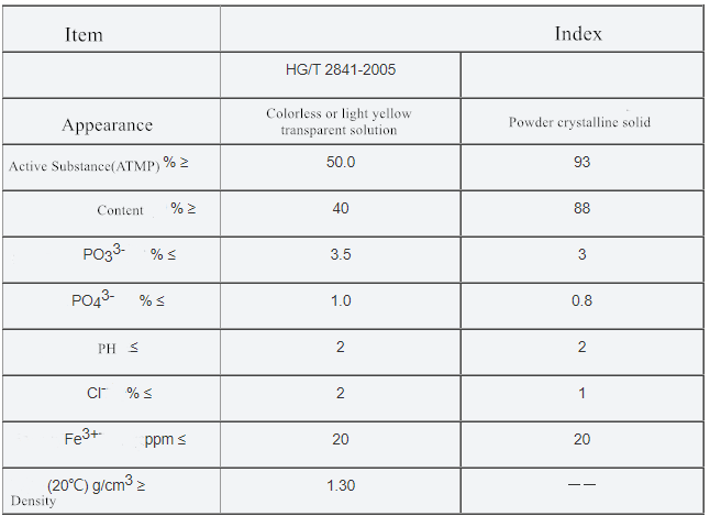 Amino tris(methylene phosphonic acid) has good chelation, low limit inhibition and lattice distortion, which can prevent the formation of scale salts in water, especially calcium carbonate scale. Amino tris(methylene phosphonic acid) has stable chemical properties in water and is not easy to be hydrolyzed. When the concentration of aminotrimethylene phosphonic acid in water is high, it has good corrosion inhibition effect. This product is mainly used in thermal power plants, refineries of circulating cooling water, oilfield water injection system. It can reduce the corrosion and scaling of metal equipment or pipeline. Amino tris(methylene phosphonic acid) can also be used as chelating agent of metal ions and surface treatment agent of metal ions in textile printing and dyeing industry.