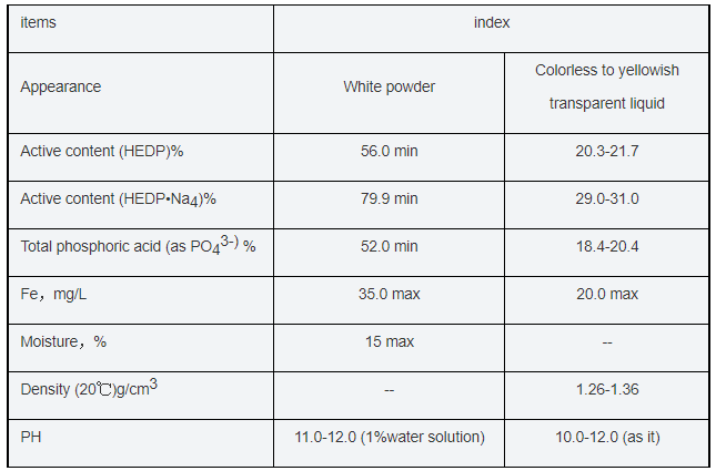 HEDP · Na white powder solid is easily soluble in water, convenient for transportation, and suitable for use in cold conditions. It can form stable complexes with iron, copper, zinc and other metal ions, and can dissolve oxides on metal surfaces. It is an alkaline water stabilizer.