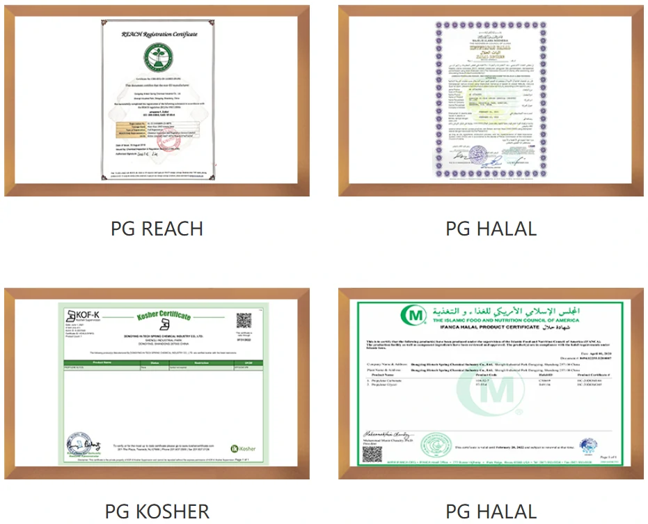 ◆ We are a professional manufacturer of Propylene Glycol, certified by ISO9001, HALAL, REACH, KOSHER, ect.