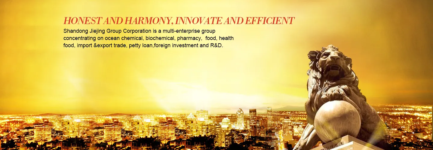 Shandong Jiejing Group Corporation was founded in 1968. It is a multi-enterprise group concentrating on ocean biochemical, health food, import & export trade, petty loan, foreign investment and R&D. It has four subsidiary companies and one joint venture company. The company covers 500,000 square meters and has more than 1200 employees, with total assets of RMB2.1 billion, sales income in 2016: RMB1.8 billion, sales income in 2017: RMB1.96 billion.