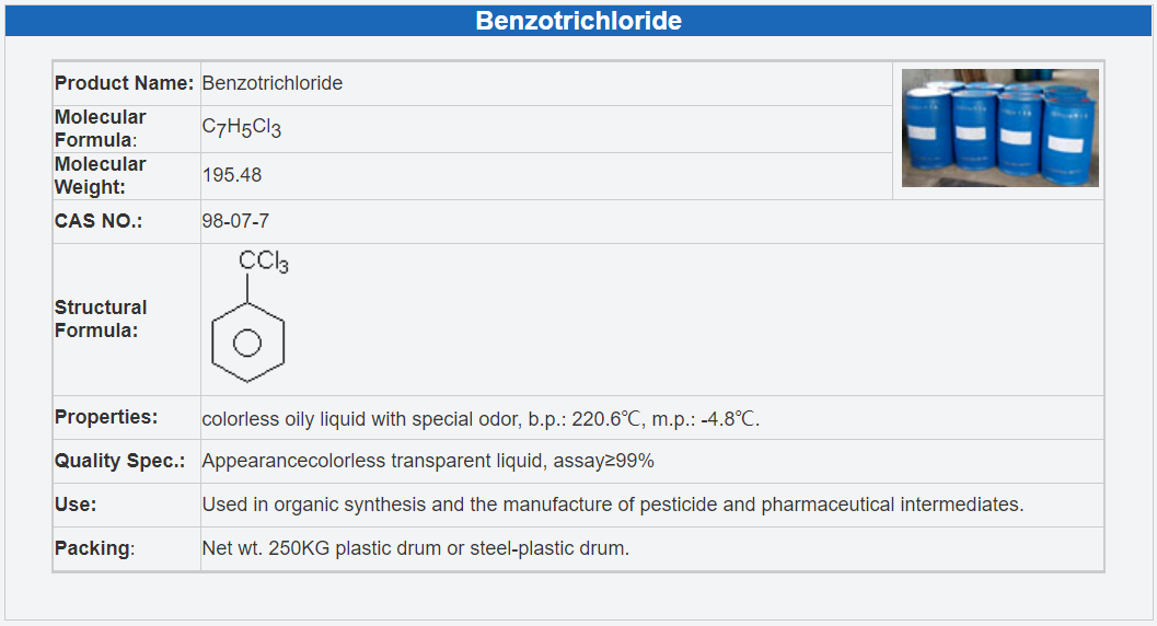 3,5-Dichlorobenzoyl Chloride / 2,3-Dichlorobenzoyl Chloride / Benzoyl Chloride / 4-Fluorobenzoyl Chloride / 2-Fluorobenzoyl Chloride / 3-Fluorobenzoyl Chloride / Benzotrichloride / 2-Fluorobenzyl Chloride / 1-(Chloromethyl)-4-Fluorobenzene / 2-Fluorobenzal Dehyde / 4-Fluorobenzal Dehyde / 4-Fluorobenzoic Acid / 2-Fluorobenzoic Acid