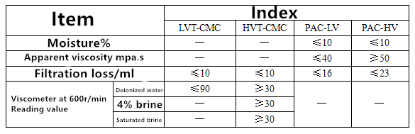 Product performance and features: 1 It has high water loss control ability, especially PAC is an efficient fluid loss reducer. With a low dosage, the water loss can be controlled at a high level without affecting other properties of the mud. 2. The mud cake formed is of good quality, firm and tough. 3. It has good temperature resistance and excellent salt resistance. It can still have good water loss reduction ability and maintain certain rheology under a certain salt concentration. The viscosity hardly changes in the ratio of dissolved in salt water to dissolved in water. It is especially suitable for offshore drilling and deep wells. 4. It can well control the rheology of mud and has good non-Newtonian fluidity. In addition, CMC is used as cementing fluid to prevent fluid from entering pores and fractures; It can be used as fracturing fluid to control the loss of fluid into the oil well.