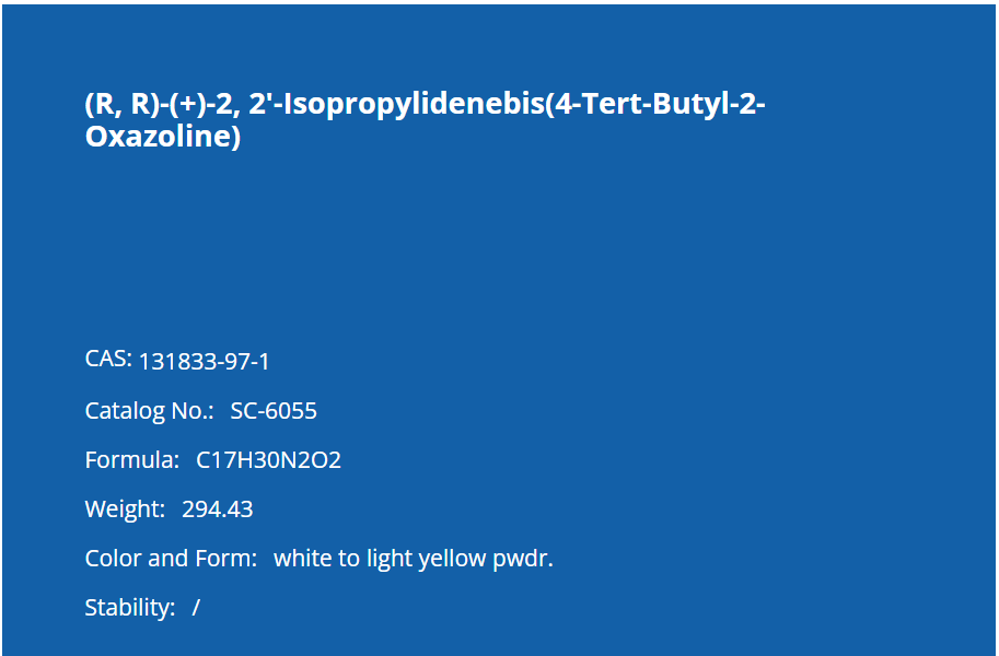 (R, R)-(+)-2, 2'-Isopropylidenebis(4-Tert-Butyl-2-Oxazoline) / CAS 131833-97-1