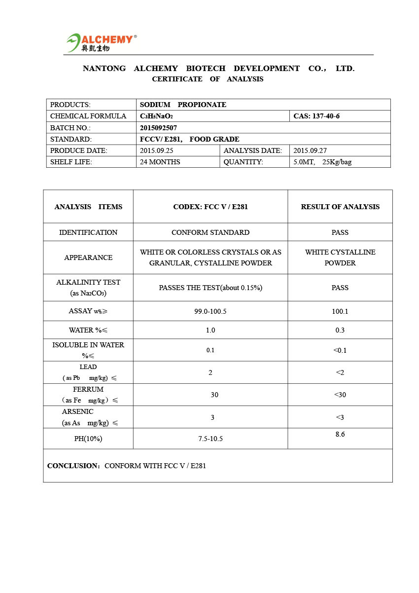 Calcium Dipropionate / Sodium Propionate / Sodium Hydrogen Diacetate / Sodium Acetate / Sodium Dehydroacetate / Dehydroacetic Acid / Potassium Sorbate / Disodium Edetate